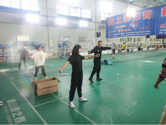 羽毛球是一项普及很广的体育运动项目,受到很多人的喜爱,姜老师首先为大家介绍了羽毛球比赛的场地、规则,并详细指导教授了握拍、挥拍、步法等内容。