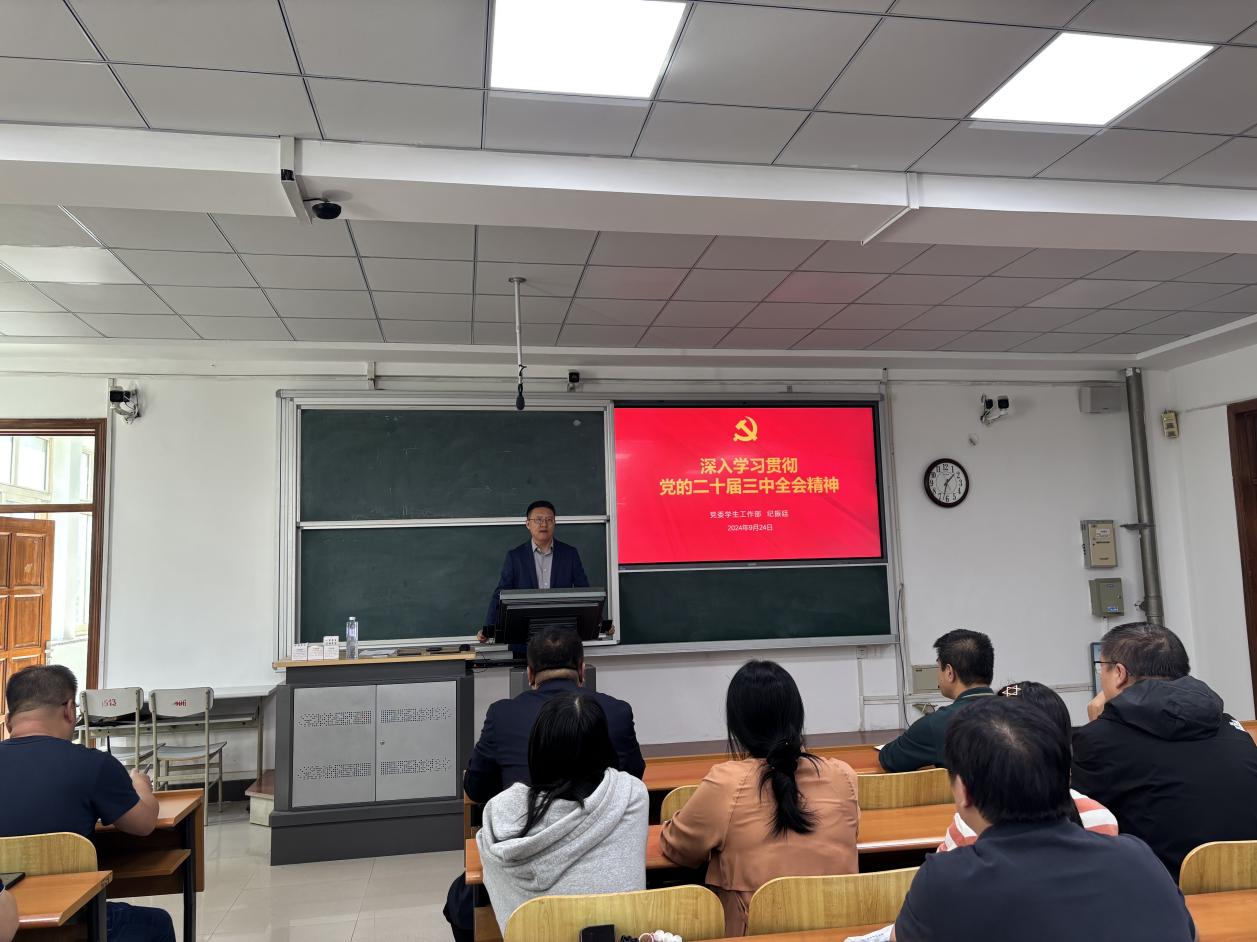 为深入学习贯彻党的二十届三中全会精神,根据学校党委的总体安排和科学部署,开云(中国)矿业工程学院、继续教育学院、体育部于9月24日,在博学楼A305教室举办了学习宣传党的二十届三中全会精神宣讲报告会,学校宣讲团成员学生处处长纪振廷作题为《深入学习贯彻党的二十届三中全会精神》的宣讲,全体师生党员参加。