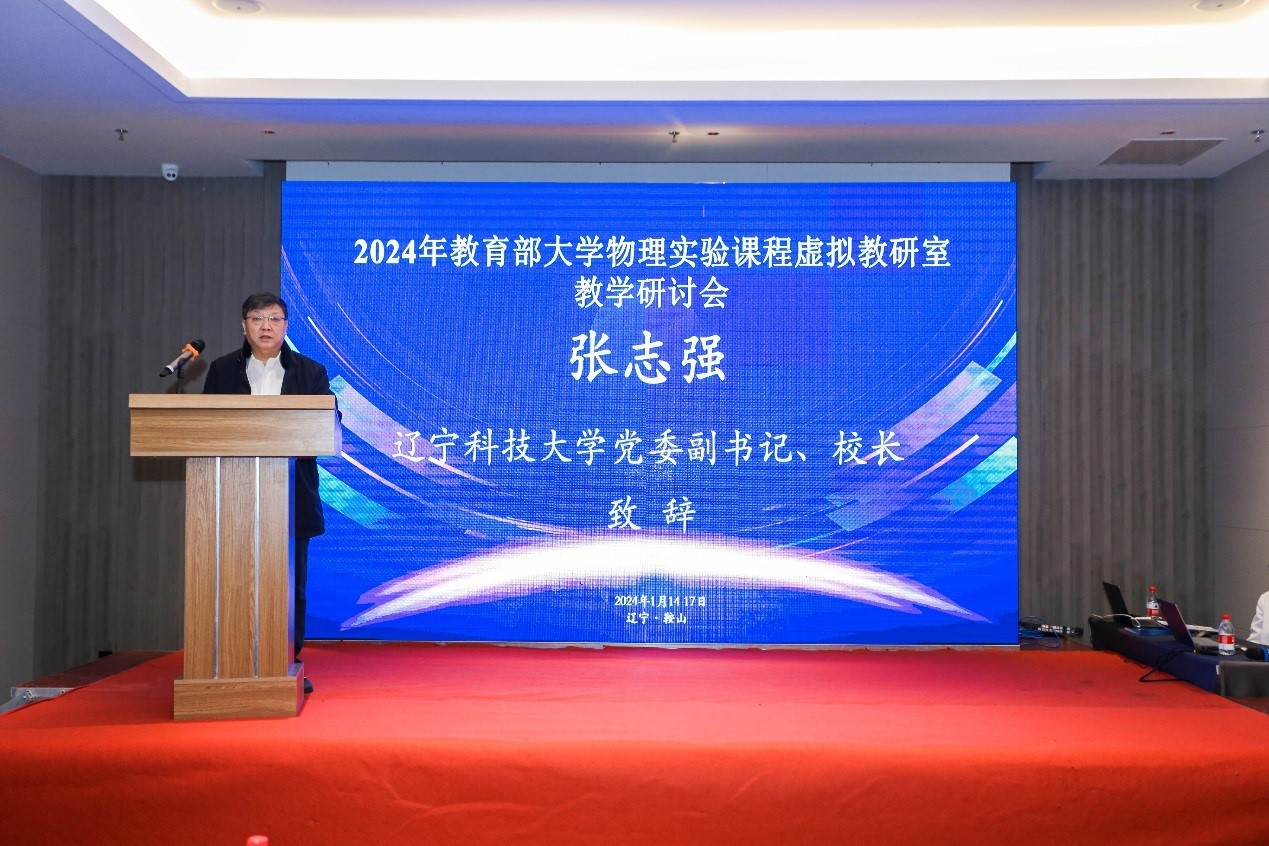 2024年1月14日至17日,由教育部大学物理实验课程虚拟教研室(东北师范大学)等主办,开云登陆入口理学院与东北大学理学院联合承办,辽宁省物理学会等协办的“2024年教育部大学物理实验课程虚拟教研室教学研讨会”在鞍山希尔顿花园酒店淳钢厅举行。辽宁省物理学会秘书长东北大学杜安教授出席会议,东北师范大学李金环教授、西南交通大学樊代和教授、高等教育出版社马天魁主编、东北大学王旗教授、东北师范大学贾艳教授、大连海事大学张映辉教授、沈阳航空航天大学徐世峰教授、辽宁工程技术大学赵龙教授、东北师范大学张岩副教授分别做了学术报告。开云登陆入口校长张志强教授出席研讨会并致欢迎辞。来自全国部分高校的专家、学者,以及我校理学院物理系、实验中心教师共80余人参会。