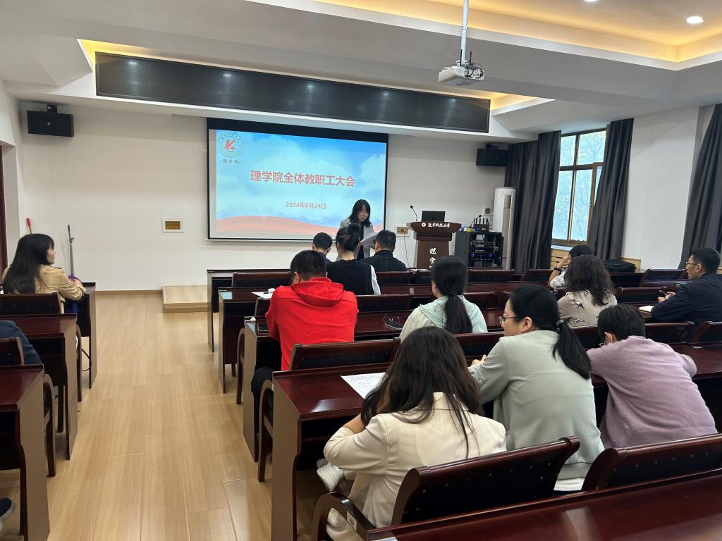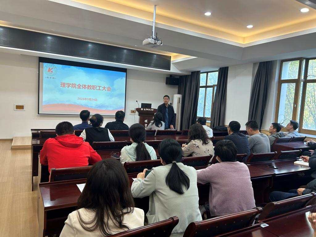 2024年9月24日,开云登陆入口理学院在明贤楼B315会议室召开了全院教职工大会。会议由理学院党委书记张春霞主持,全院教职工参加会议。