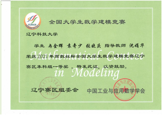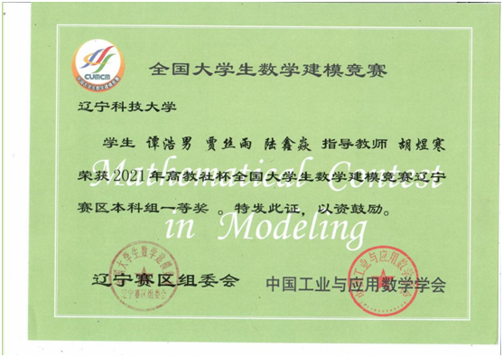 2021年我校学员在全国大学生数学建模竞赛中共有30支代表队参赛,在胡煜寒和沈娟华等竞赛经验丰富的教师悉心指导下,经过角逐,总计获省级奖10项,其中荣获一等奖3项,二等奖3项,三等奖4项。