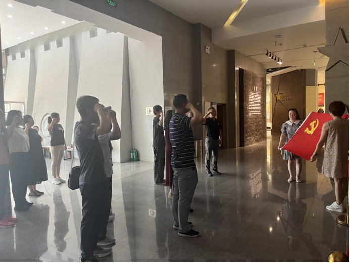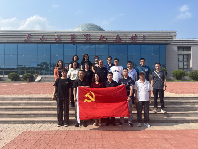 慰问结束后,联合慰问小组一行人前往黑山阻击战纪念馆参观学习,开展“忠诚固根本,建功新突破”主题党日活动。黑山阻击战纪念馆位于“101”高地遗址的西南侧,是一座集收藏、保护、展示、研究黑山阻击战战史于一体的对外开放的专题纪念馆。通过多媒体画面、照片、图片、文物、史料、景观复原等形式,大家全面、真实、准确、系统地再现了当年阻击战惊天动地、泣鬼神的伟大壮举。参观结束后,全体党员面向党旗庄严宣誓,重温入党誓词。