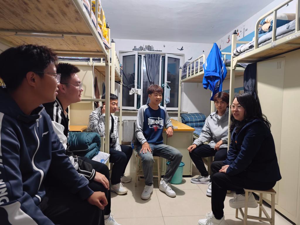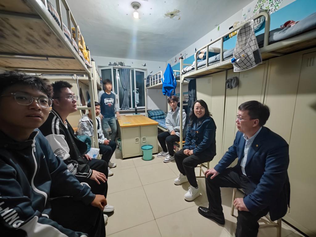 在博学楼班级自习室,理学院班子成员围绕“立鸿鹄志,做奋斗者”为主题,从大学内涵、目标确立、职业规划和个人理想等方面进行详细讲解,号召青年学子努力学习、奋发有为,将个人理想追求融入国家发展,为祖国建设贡献青春力量,并与大家就科研创新、考研就业和良好习惯等方面遇到的问题进行了交流和解答;在龙源社区,理学院班子成员与困难学生对接,全面介绍了国家和学校资助政策,深入了解学生家庭状况,鼓励学生刻苦求学,克服暂时困难,并一致表示要竭尽全院之力深度帮扶,助力贫困学子顺利完成大学学业;在学生宿舍,大家了解寝室成员目前生活状况,鼓励形成良好的生活习惯,互相包容互相理解,建立良好人际关系,共建文明和谐寝室,并叮嘱学生提升安全防范意识。对接期间,班子成员与学生共进晚餐。