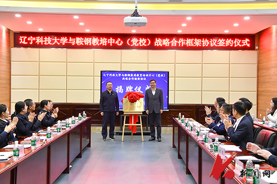 仪式上,李国志与李胜利分别代表双方签署战略合作框架协议。杜学华与孟劲松共同为“鞍钢集团教育培训中心高校教学培训基地”揭牌。