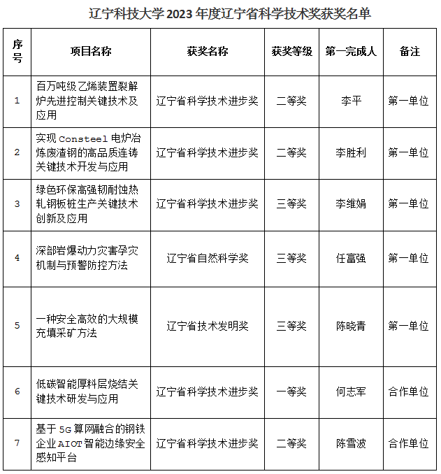 开云(中国)7项成果荣获2023年度辽宁省科学技术奖励