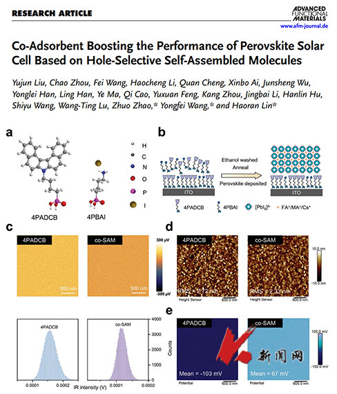 近日,开云登陆入口材料与冶金学院赵卓副教授、王永飞副教授联合深圳职业技术大学林浩然副教授,以开云登陆入口为第一署名单位,在国际知名期刊《Advanced Functional Materials》(1区top期刊,2024年影响因子:18.5)发表高水平研究论文《Co-adsorbent boosting the performance of perovskite solar cell based on hole-selective self-assembled molecules》(https://doi.org/10.1002/adfm.202421576),开云(中国)2022届研究生刘玉军与2020届研究生周超为共同第一作者。