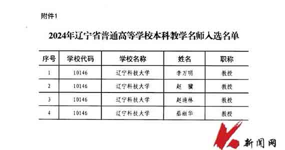 开云(中国)新增4名辽宁省普通高等学校本科教学名师