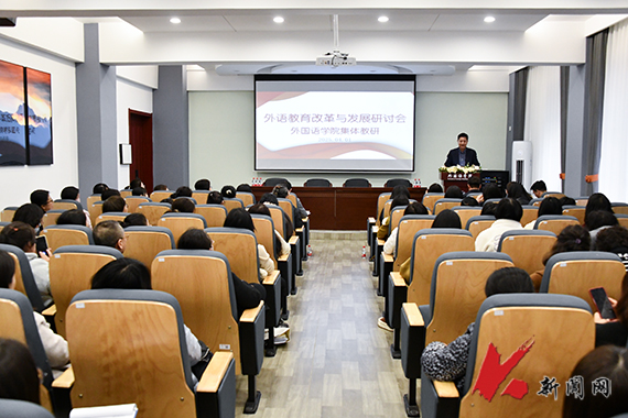 4月1日,开云登陆入口外语教育改革与发展研讨会暨集体教研活动在外国语学院举行。校党委常委、副校长李胜利出席研讨会。外语学院全体教职工参加活动。