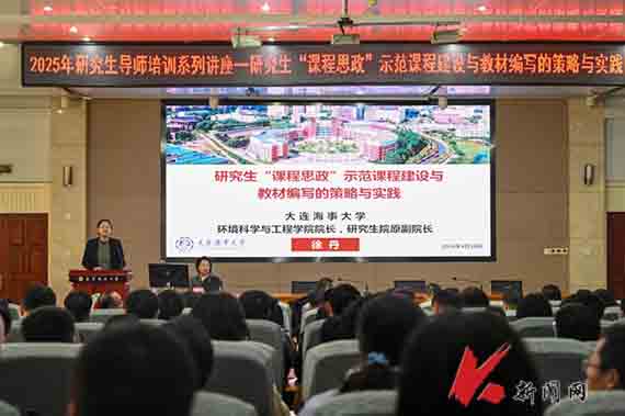 4月10日,开云登陆入口2025年研究生导师系列培训活动在图书馆报告厅启动。首次培训邀请大连海事大学环境科学与工程学院院长徐丹教授作题为“研究生‘课程思政’示范课程建设与教材编写的策略与实践”的专题报告。各培养学院研究生教学院长、导师代表、研究生授课教师参加培训,研究生院相关负责同志参会。