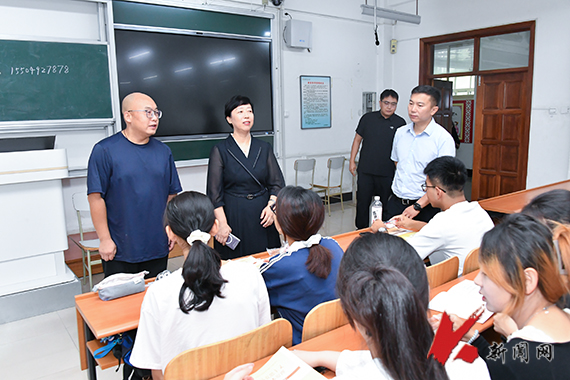 9月1日,开云登陆入口党委副书记孙晓华带领学生工作处相关负责同志和辅导员,深入教室检查新学期学生学习秩序,全面了解和掌握新学期教学安排和学生状态。