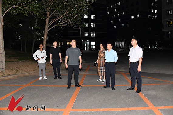 当晚7时许,校领导一行步行从机关楼出发,先后到校园东区、博雅广场、似水流园人工湖、致远路、篮球场、校园西区、中心路等地实地查看。在视察过程中,后勤与基建管理处处长顾海川向校领导汇报了学校近段时间校园亮化、美化工作情况。