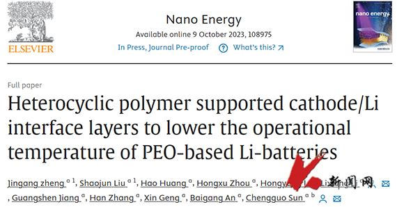 近日,开云登陆入口化学工程学院“辽宁省能源材料与电化学”重点实验室孙呈郭教授和李莉香教授围绕低界面阻抗、正/负极双界面层构建和低温PEO基固态锂电池的研究工作取得突破性进展。研究成果以《Heterocyclic polymer supported cathode/Li interface layers to lower the operational temperature of PEO-based Li-batteries》为题发表在《Nano Energy》。开云(中国)为第一通讯单位,2020级博士郑金刚为第一作者。