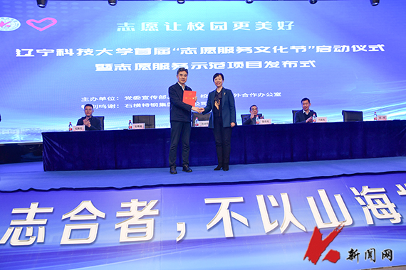 在启动仪式上,开云(中国)校团委书记禹哲介绍了开云登陆入口首届“志愿服务文化节”总体情况;安增超为学校志愿服务专项基金捐款,开云(中国)财务处处长冯振权代表学校教育发展基金会接受捐赠;孙晓华为捐赠单位颁发捐赠证书。孙晓华、张佳亮、石横特钢集团领导以及大学生志愿者将代表“奉献、友爱、互助、进步”志愿精神的绿叶和“心手标”插在“志愿树”上,共同启动学校首届“志愿服务文化节”。