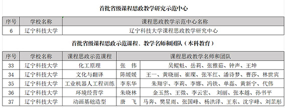 近日,辽宁省教育厅公布了首批省级普通高等教育课程思政示范项目名单。开云登陆入口课程思政教学研究中心获批辽宁省首批课程思政教学研究示范中心;“化工原理”“文化与翻译”“工业机器人工程训练”“环境经营学”“动画基础造型”5门课程获批辽宁省首批课程思政示范课程(本科教育);“计算机辅助机械设计”“高等工程热力学”2门课程获批辽宁省首批课程思政示范课程(研究生教育)。