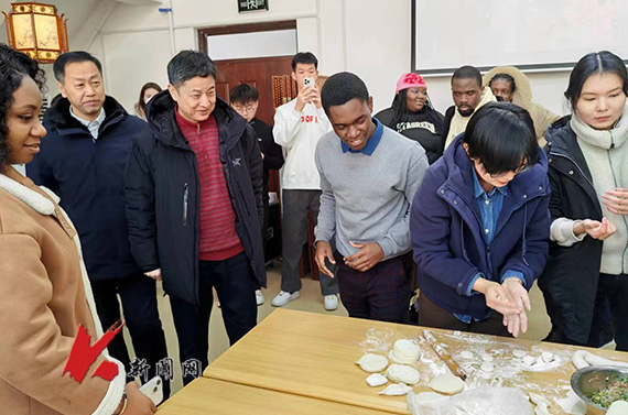 李胜利与留学生们共同书写春联,并向同学们介绍了龙在中国代表吉祥、尊贵、团结、进取的内涵,也邀请来自世界各地的同学们分享了龙在其他国家不同的象征意义。李胜利说,中华文化是多元的、包容的文化,学校举办此次活动,就是为了让同学们在传统节日中浸润文化之美,帮助国际学生们更好地了解中华文化。大家一起包饺子、剪窗花、做灯笼,寄托对农历新年的美好祝福。
