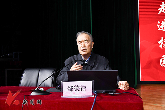 邹德浩以《祖国在我心中——我在联合国当首席记者》为题,从自身在联合国从事记者工作的真实经历和切实体验切入,用朴实的语言、大量的图片、详实的数据、丰富的背景资料,以其敏锐、独到的视角为师生们详细解读了联合国的历史和当前国际风云变幻的局势,介绍了我国在联合国、在国际事务中的作用越来越重要的生动事例,诠释了在党的领导下实现中华民族伟大复兴中国梦的伟大意义。