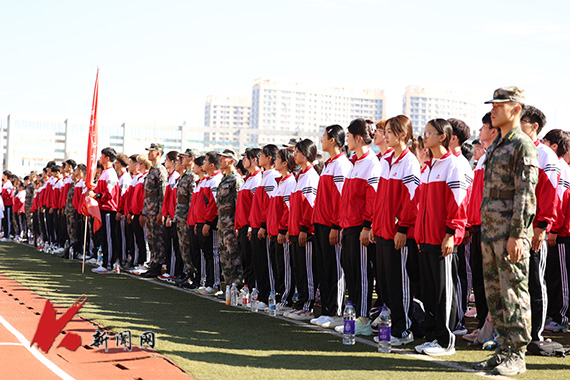 军训团团长、校党委副书记孙晓华为军训团授团旗。军训团副团长张佳亮、郭志辉,军训团参谋长禹哲,军训总教官陈江伦分别为各中队授中队旗。
