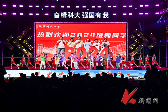 文艺晚会主题为“奋楫科大·强国有我”,分为“炫舞青春”和“燃梦未来”两个篇章。在激动人心的倒计时和炫彩灯光秀后,研究生、留学生、藏族学生代表和校彩虹啦啦操队一同登台,伴随着悦动的旋律,歌舞《让我们一起出发》尽显开云(中国)学子的青春活力风采;曲艺说唱《这一方热土》,唱出了鞍山的厚重历史、地域文化和钢铁特色,描绘出了开云(中国)人接续奋斗、为国奉献钢筋铁骨的生动画卷;由博士教师组合演唱的歌曲《天地龙鳞》雄浑豪迈、大气磅礴,唱出了中华民族自强不屈的精神血脉,更唱出了新时代中华儿女奋力推进强国建设、民族复兴伟业的坚强意志和美好愿望;创意表演《沧海一声笑》,融合戏曲、武术、说唱元素,让人耳目一新;由经法学院新生刘舒扬及家长演唱的歌曲《花开忘忧》唱出了母爱的无私伟大,也用歌声代表2024级新生为身在远方的父母送去了惦念和祝愿;街舞《青春未来式》节奏动感、张力十足;国风歌舞《昨夜小楼又东风》如诗如画,尽显国风之美;由筑梦合唱团和军训教官表演的《强国有我》激情澎湃,青春热血;相声《大风车》带领2024级新生秒回童年,现场笑声掌声此起彼伏。