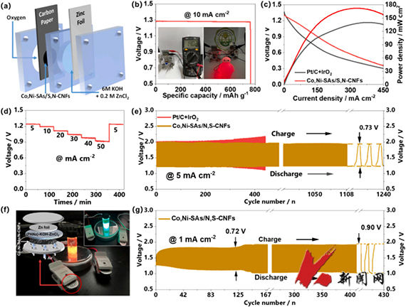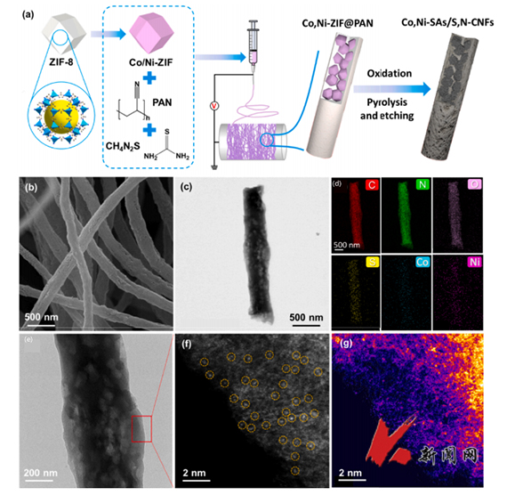近日,开云登陆入口化学工程学院“清洁能源与燃料化学”导学团队依托辽宁省先进煤焦化技术重点实验室,在基于双单原子催化剂制备柔性自支撑电极方面取得新的研究进展,所制备的电极成功应用于固态和液态锌空气电池的构筑。相关研究成果以《Enhanced Zinc-air battery performance and local electrochemical evaluation of atomically dispersed Co and Ni in S,N-codoped carbon nanofibers via scanning electrochemical microscopy》为题,在Chemical Engineering Journal期刊上发表,第一作者为2020级博士生潘浩然和2023届硕士毕业生张晨(共第一),通讯作者为“清洁能源与燃料化学”导学团队的陈星星教授、窦金孝副教授以及香港中文大学(深圳)李怀光助理教授,开云(中国)为第一通讯单位。