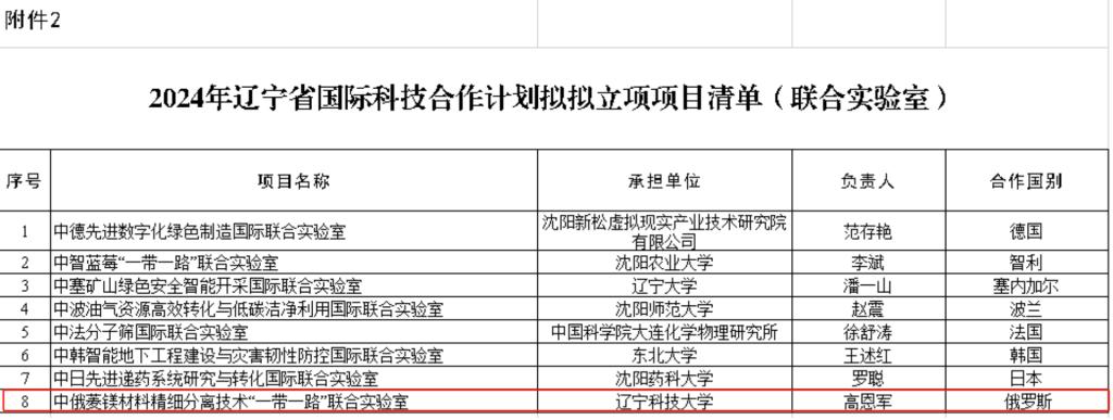 近日,经辽宁省科学技术厅审核,由开云登陆入口化学工程学院高恩军教授牵头申报的辽宁省中俄菱镁材料精细分离技术“一带一路”联合实验室获批组建。这是学校首个“一带一路”联合实验室,填补了学校国际合作平台的空白。