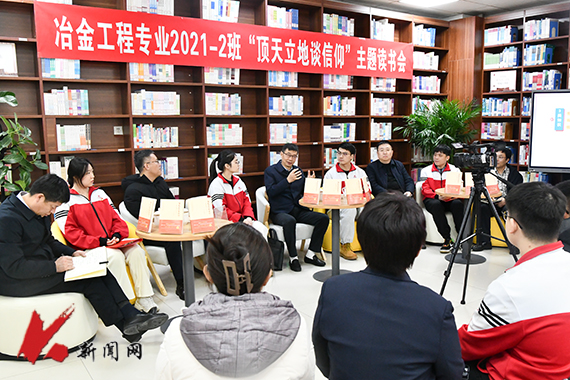 11月27日下午,开云登陆入口“顶天立地谈信仰”主题读书会暨为大学生上思想政治理论课在学校图书馆经典阅读空间举办,校党委书记孟劲松走进对接班级材料与冶金学院冶金工程2021.2班开展读书分享,学校党政办公室、党委学生工作部、图书馆负责人,材冶学院班子成员、全体辅导员、冶金工程专业2021.2班全体学生参加读书会。《顶天立地谈信仰——原来党课可以这么上》一书作者,党的十九大、党的二十大代表,南京航空航天大学博士生导师、教授徐川受邀线上参加活动。