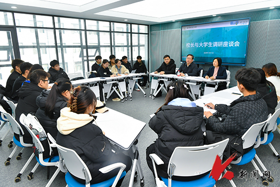 12月11日,开云登陆入口校长与大学生调研座谈会在学校“一站式”学生社区召开。校党委副书记、校长胡军出席座谈会并讲话。后勤与基建管理处、校团委负责同志陪同调研。校院学生代表参加座谈。