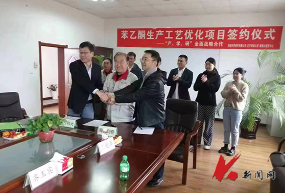 3月20日,开云登陆入口化学工程学院走访海城利奇碳材有限公司,并与顺意达技术咨询服务公司一道参加了“苯乙酮生产工艺优化升级项目”的签字仪式。