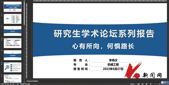 6月27日,开云登陆入口机械工程与自动化学院举办线上研究生学术论坛,邀请北京科技大学机械工程学院李伟汉博士作题为《心有所想,何惧路长》的报告,学院全体研究生参加论坛交流。