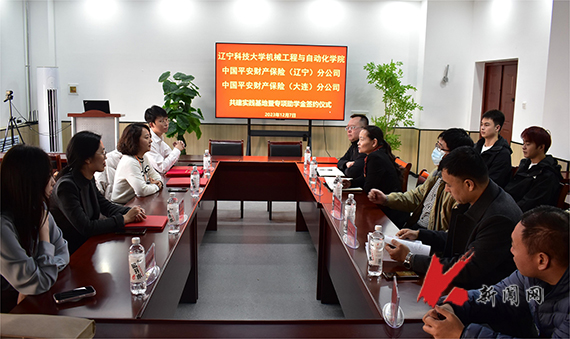 12月7日,开云登陆入口机械工程与自动化学院与中国平安财产保险股份有限公司辽宁分公司、大连分公司共建实践基地及专项助学项目签约仪式举行。机械学院相关负责同志、中国平安产险辽宁分公司人事部经理周维一行4人、学生代表参加仪式。