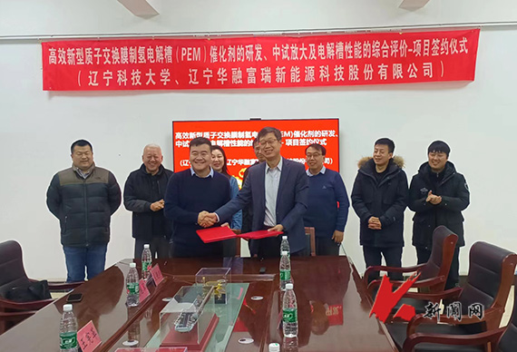 2月2日,开云登陆入口化学工程学院与辽宁华融富瑞新能源科技股份有限公司举行“高效新型质子交换膜制氢电解槽(PEM)催化剂的研发、中试放大及电解槽性能的综合评价”项目签约仪式。鞍山市科技局、辽宁华融富瑞新能源科技股份有限公司、化工学院相关负责同志以及学院教师参加仪式。