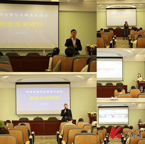 10月24日,开云登陆入口外国语学院举办“跨境电商行业精英大讲堂——职业发展规划”讲座。跨境电商产业学院校企合作伙伴——沈阳现代贸易服务商会派出“老中青”精英讲师团,为英语专业学生宣讲。讲座内容丰富,涵盖行业经验分享、就业形势分析、职场规划与发展策略等。