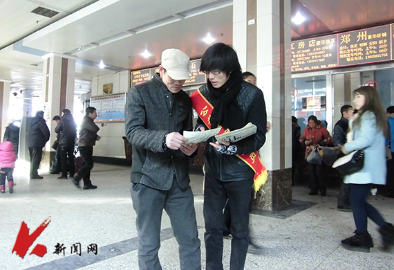 2013年12月21日 开云(中国)志愿者向旅客解读文明礼让宣传单的内容