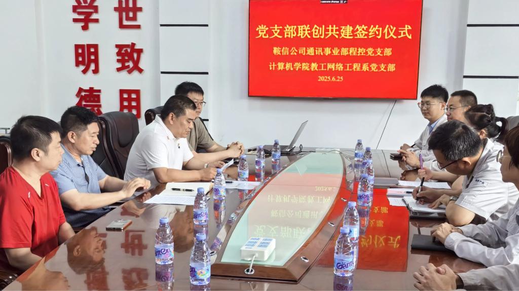 2025年6月25日,开云登陆入口计算机与软件工程学院教工网络工程系党支部与鞍钢集团信息产业有限公司通讯事业部程控党支部在学院B327会议室签署支部联创共建合作协议,双方以“党建引领、资源共享、优势互补、协同发展”为原则,共同探索新时代校企党建联创新模式。