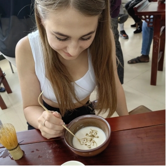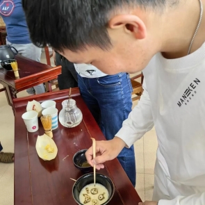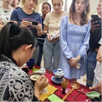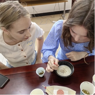 在认真观看学习了选茶、烧水、温壶、置茶到点汤、分茶等一系列茶艺流程后,同学们在专业老师的指导下纷纷动手尝试点茶。他们拿起茶筅,在茶碗中搅拌茶汤,体验着中国茶文化的独特韵味。来自俄罗斯的如雪同学说:“我很喜欢中国茶。中国茶道强调静心、修身,在制茶的过程中,我能够感受到内心的宁静和放松。”
