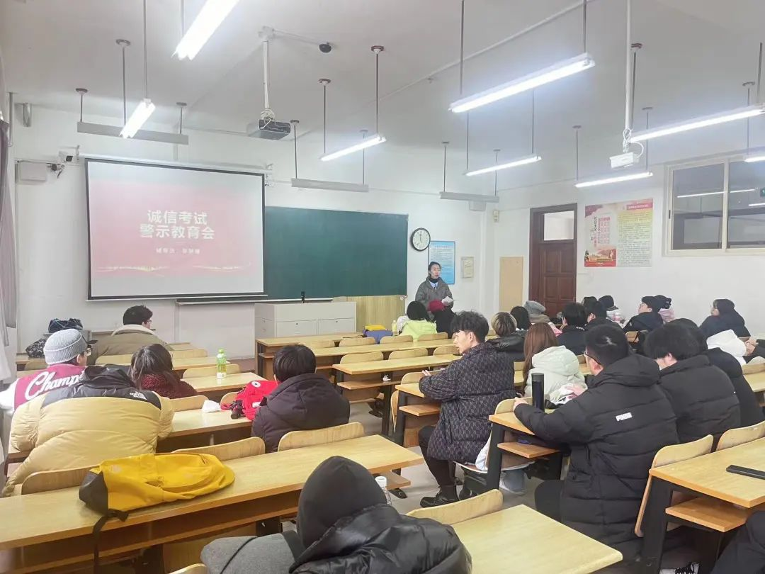 1月2日,国际教育学院于博学楼A402、C504召开诚信考试教育会。辅导员张翀睿主持本次教育会,联冶金全体同学参加。