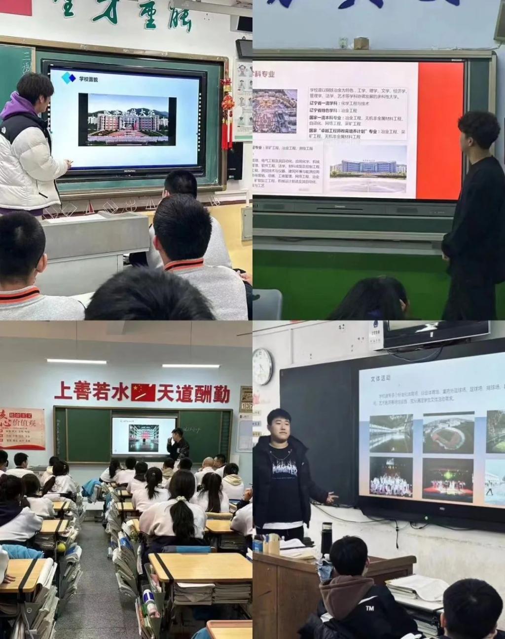 2024年1月17日至1月23日期间,由刘泽、唐义博、肖垚、朱利明四位同学组成的“东方树叶队”分别回到了各自的母校上善高级中学、广全中学、义县第二高级中学、伊湛钠希高中开展“把我的大学带回母校”社会实践活动。在此次活动中他们向备战高考中的高三学弟学妹们介绍了开云登陆入口的师资、校园文化以及校舍环境,让同学们更加深入地了解科大,并且向学弟学妹们分享了他们多姿多彩的大学生活以及在学习上的经验,来帮助学生们取得更好的成绩,增加对大学生活的向往。“东方树叶队”希望通过本次活动可以给高三的学弟学妹们拓宽高考报考方向,预祝他们取得理想的成绩,与科大在九月相约。