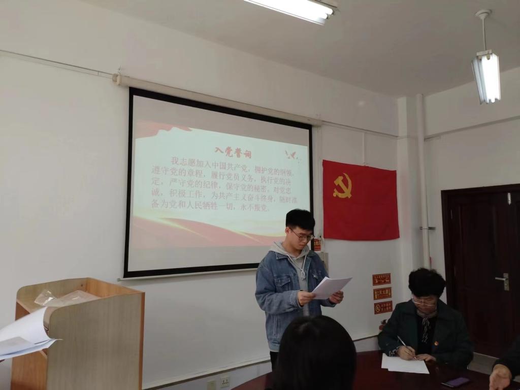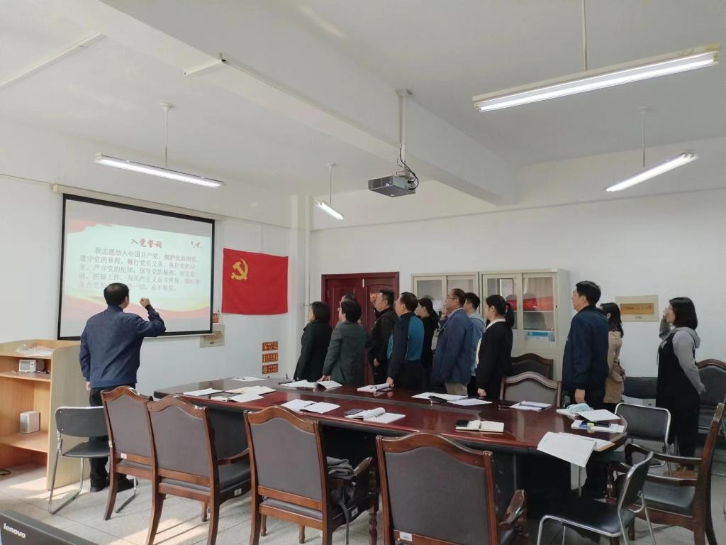 学院党委书记周晓平、党支部书记黄吉来和党员白腾飞分别代表老、中、青党员宣读本人入团志愿书和入党志愿书,并发表简短感言。支部书记黄吉来带领全体党员面向党旗重温入党誓词,教师备受鼓舞,嘹亮的声音、铿锵的誓言,彰显了对教书育人使命的承诺和担当。