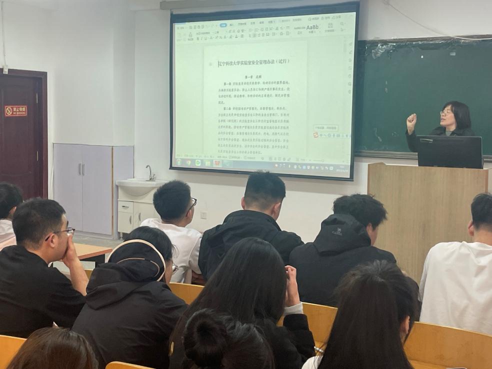 周晓平解读“八个凡是”、“六个一律”、“三不一要”安全提示,并领学《开云登陆入口实验室管理办法》《开云登陆入口消防安全管理规定》《开云登陆入口校园道路交通安全管理办法》等有关安全制度。安全教育班会上对研究生强调了以下几点要求:一是要认真学习实验室安全、消防安全、校园道路交通安全的规定,熟悉安全手册知识,并严格执行;二要加强对废气、废液、废渣和噪声的处理与排放的管理,严禁在实验室内大声喧哗、抽烟﹑吃食物和乱丢垃圾,禁止污染环境,禁止带无关人员进入实验室等,提升同学们安全意识;三要养成良好的行为习惯,使用危险化学品、放射性物品、特种设备要按规程操作,使用时应在教师详细指导下进行,采取必要的安全防护措施。