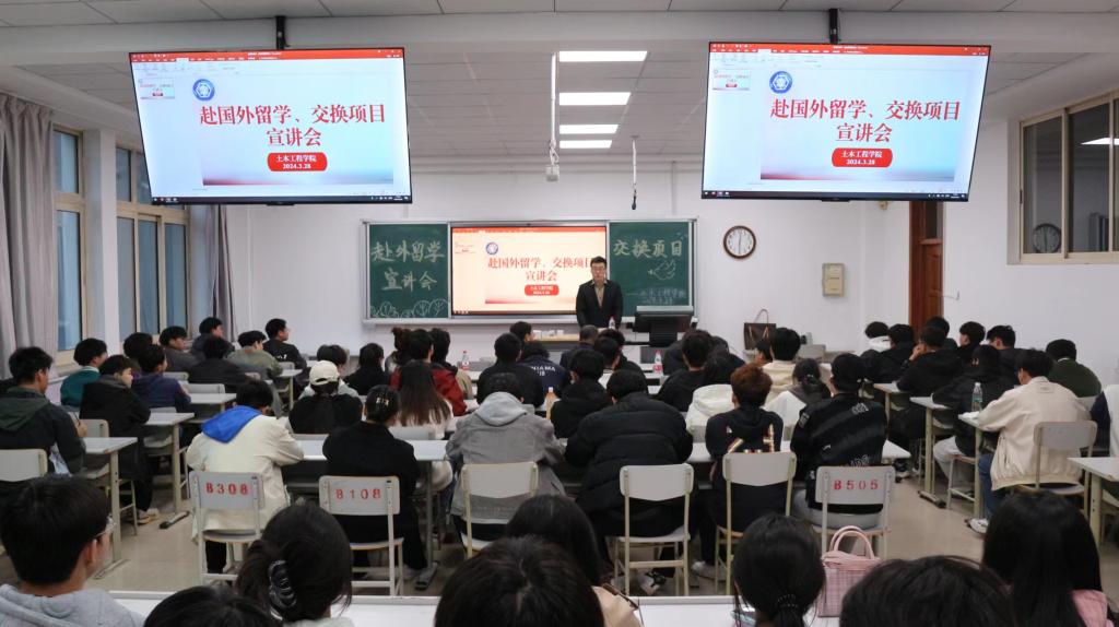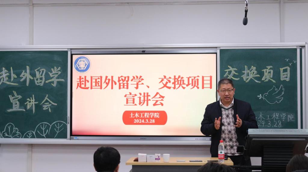 3月28日,开云登陆入口土木工程学院于博学楼A302召开出国交流政策宣讲会。学院领导班子、国际教育学院(国际交流合作处)负责同志以及近百名学生参加宣讲会。