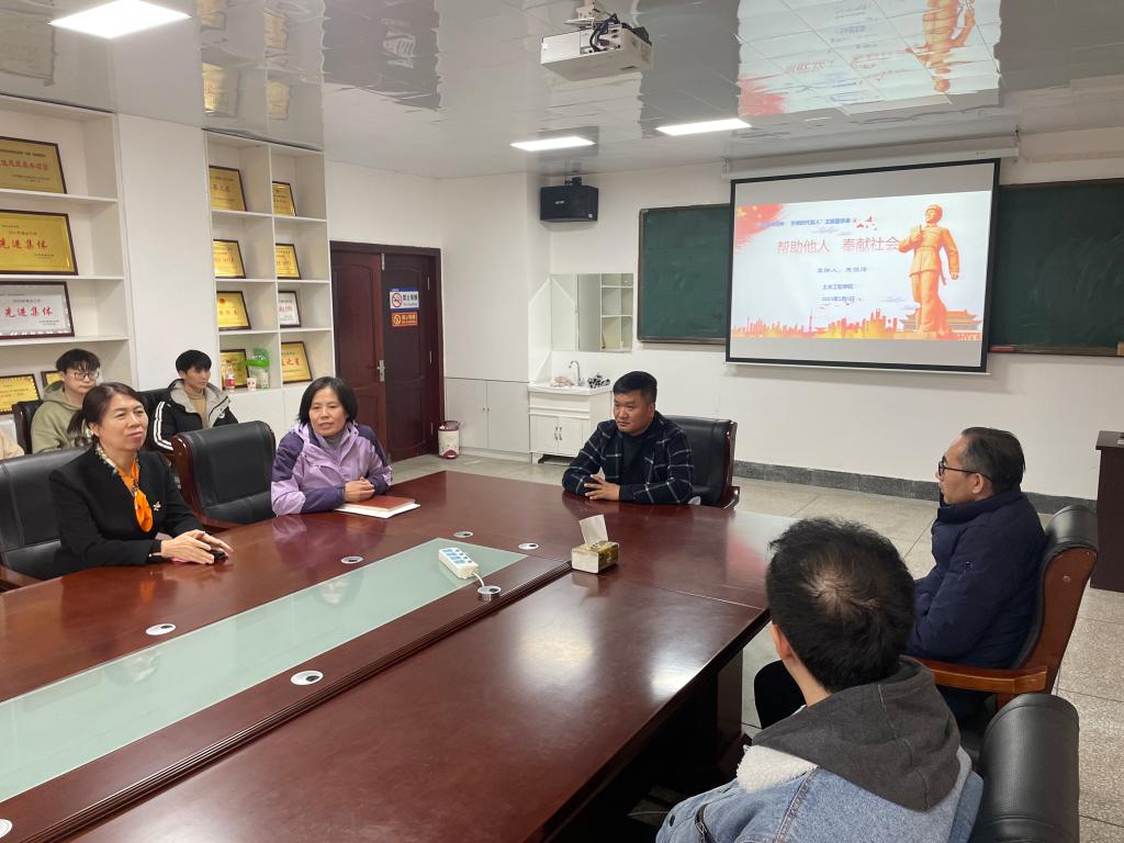 1、2023年3月3日,土木工程学院开展“弘扬雷锋精神 争做时代新人”主题座谈会,邀请全国岗位学雷锋标兵、辽宁省道德模范朱振峰走进博观楼A408会议室,老师和研究生40人参加此次会议。会上朱振峰与大家分享个人的成长经历,讲述儿童时期的贫苦生活,大学阶段的励志故事,工作岗位的勤勉奋进,做公益时的热情付出,让所有的在场学生为之动容和感染,表达了对“活雷锋”的真诚敬意,也承诺以后会参加更多的学雷锋活动,奉献自己的光和热,回报社会和人民。