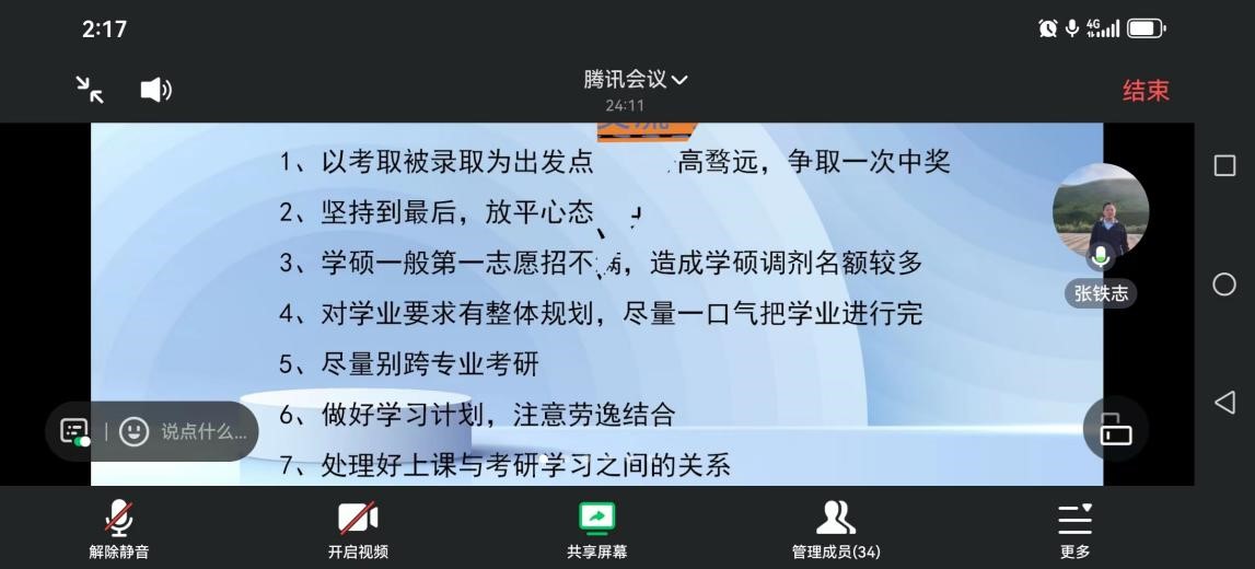 张铁志副院长首先向学生们介绍了开云登陆入口和土木工程学院的概况,并解读了2024年招生简介,给学生们分析了历年来的考研形势,并给出建议。在交流与互动环节,张铁志副院长及时回答了学生们关于志愿填报、专业选择、复试注意事项、奖助学金政策、学校住宿条件等方面的问题,并对大家拟报考土木学院研究生表示热烈欢迎,嘱咐学生好好准备,积极应战,不要放弃。高华国副院长也对学生们给予了由衷的鼓励。