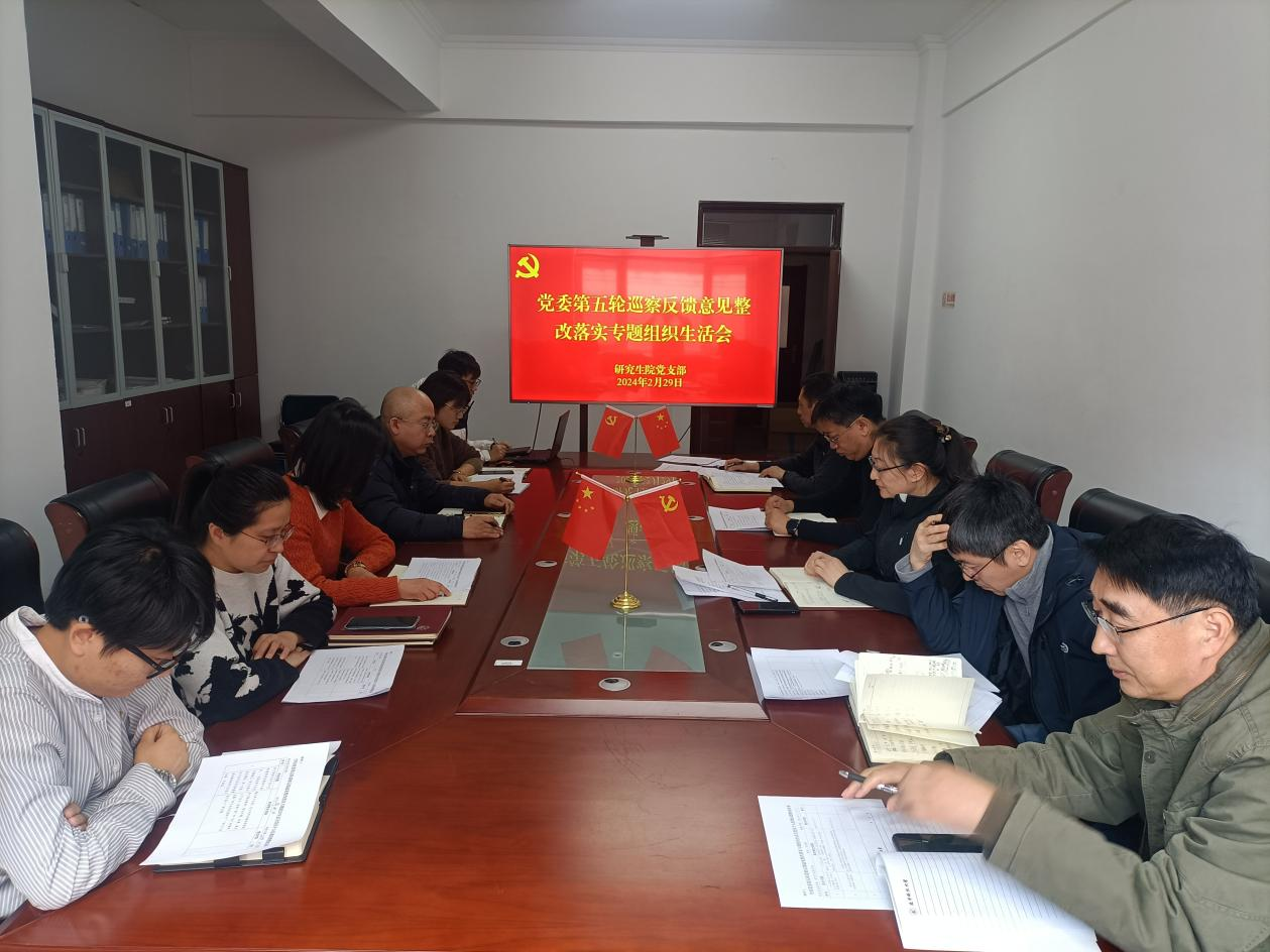 2月29日,研究生院党支部在博远楼309会议室召开党委第五轮巡察反馈意见整改落实专题组织生活会。会议由党支部书记李激光主持,支部全体党员参加。