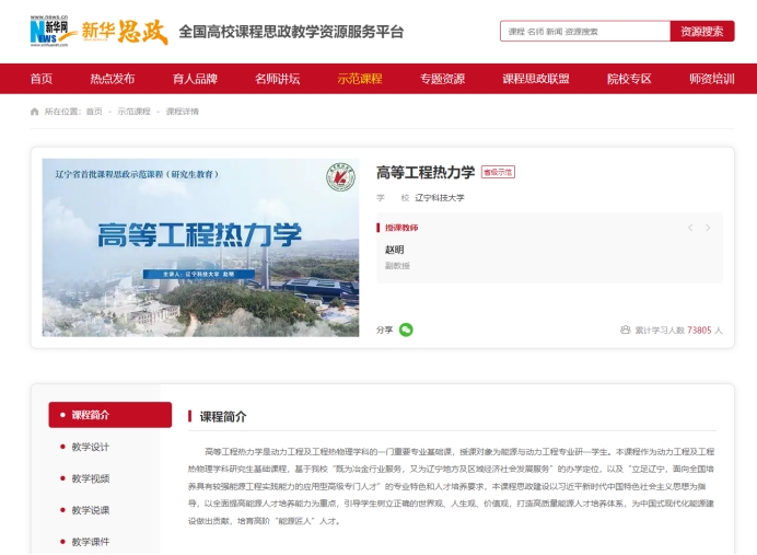 该课程是能源动力类硕士研究生的专业基础课,2024年入选辽宁省首批课程思政示范课程,本课程思政建设以习近平新时代中国特色社会主义思想为指导,以全面提高能源人才培养能力为重点,引导学生树立正确的世界观、人生观、价值观,打造高质量能源人才培养体系,为中国式现代化能源建设做出贡献,培育高阶“能源匠人”人才。